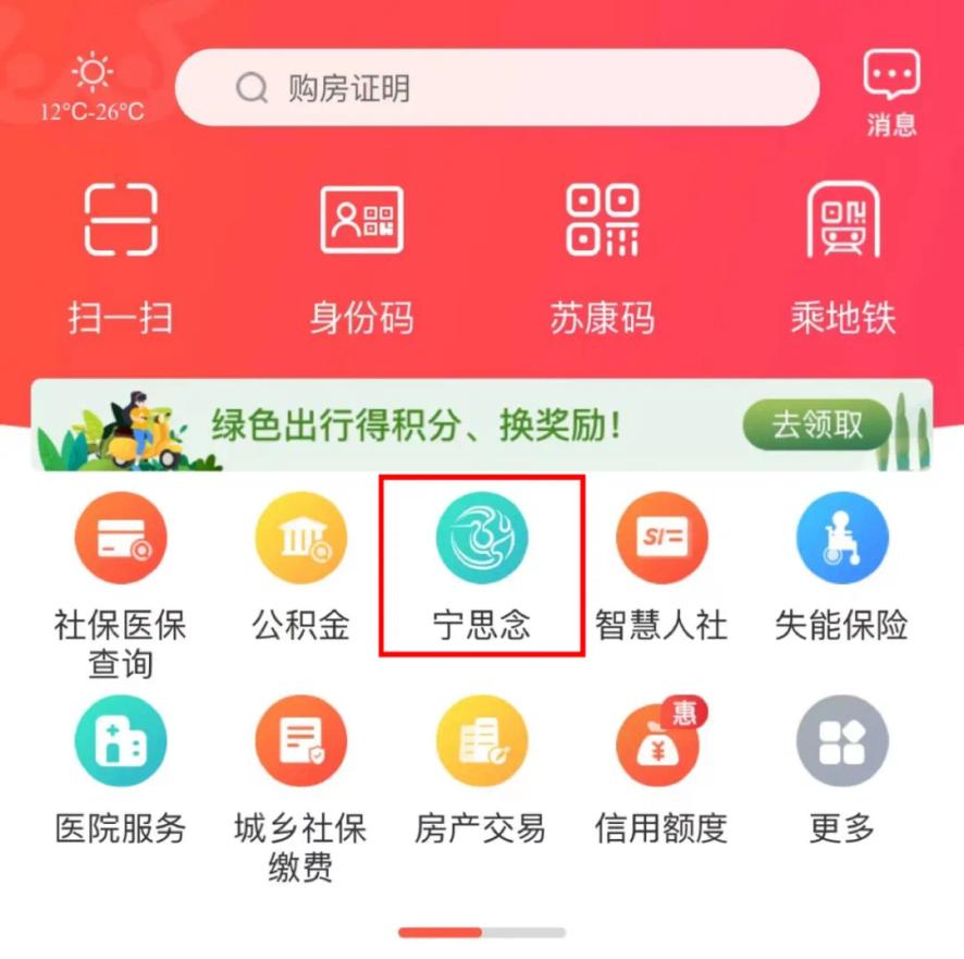 方式三:登录“我的南京”APP,进入首页点击“宁思念”。