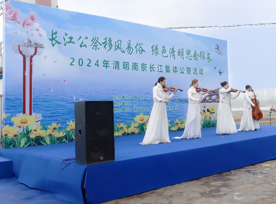 此次活动结合清明主题,以诗朗诵、服饰表演、器乐演奏等形式,宣传移风易俗,展现清明文化。活动其间,穿插殡葬知识问答,在增加互动性的同时达到宣传殡葬改革政策的目的。活动尾声,4名礼仪人员手捧鲜花篮,缓步行至鲜花入江口,引领亲属们将敬献给江葬故人的鲜花逐一撒入长江。