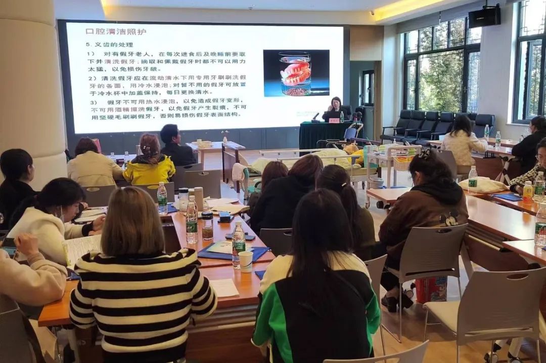 培训过程中,讲师针对不同类型失能老人的护理特点,组织学员进行现场实践操作,并与家属就如何缓解、调整日常照护中的焦虑情绪进行互动交谈。整场培训会干货满满,学员们纷纷表示受益匪浅。