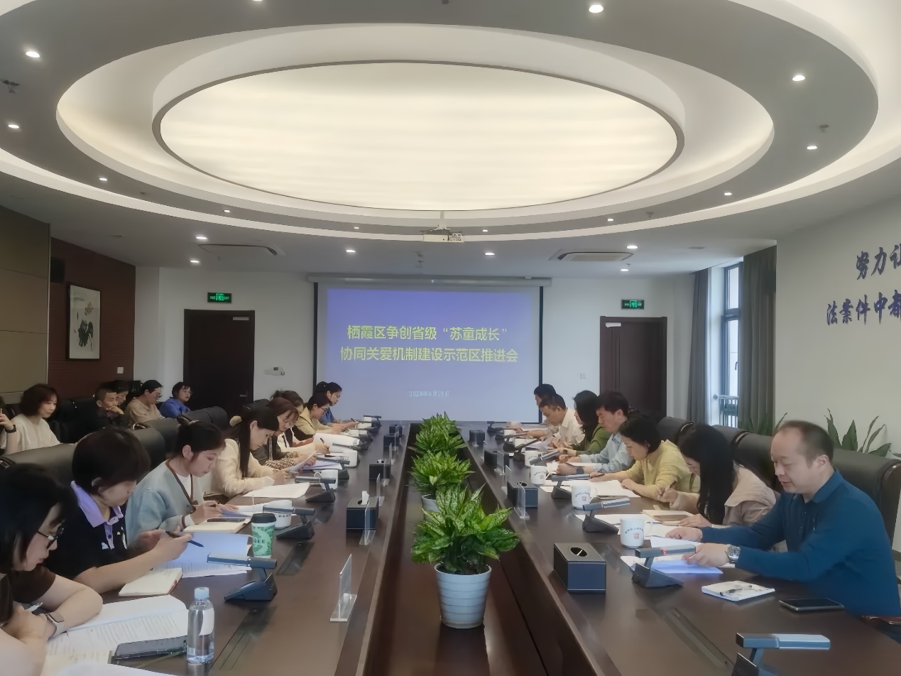 为促进未成年人身心健康和全面发展,营造全社会关心关爱未成年人的浓厚氛围,栖霞区民政局牵头多部门和辖区所有街道争创2024年省级“苏童成长”协同关爱机制建设示范区。4月25日,争创推进会在栖霞区检察院召开,会议由栖霞区民政局副局长许晶晶主持。