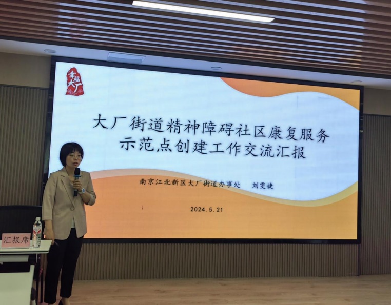 大厂街道办事处科长 刘雯婕 交流汇报大厂街道精神障碍社区康复服务示范点创建工作情况