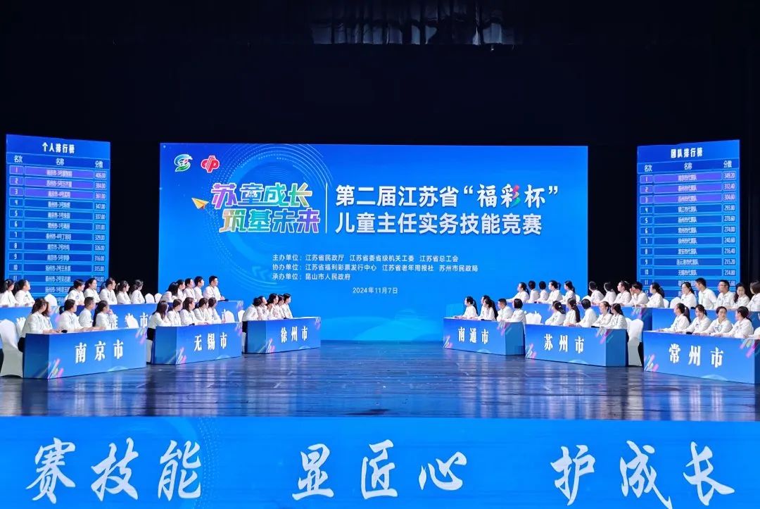 2024年11月6日至7日,由江苏省民政厅、江苏省委省级机关工委、江苏省总工会联合主办的第二届江苏省“福彩杯”儿童主任实务技能竞赛决赛在昆山拉开帷幕。经过全员培训、层层选拔,来自全省的13支参赛队、共计65名选手参加决赛。本次决赛通过理论测试、争分夺秒、技能抢答、案例纠错、情景演绎等方式,综合考核选手的理论水平和实操能力。