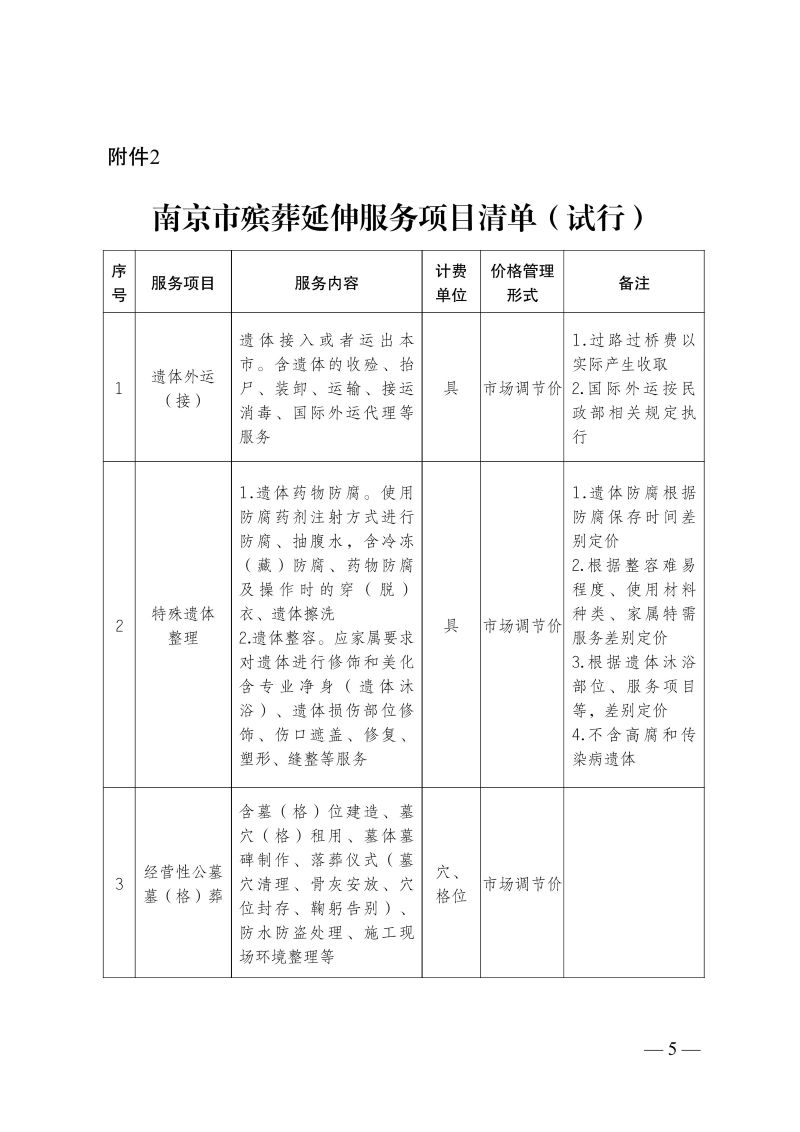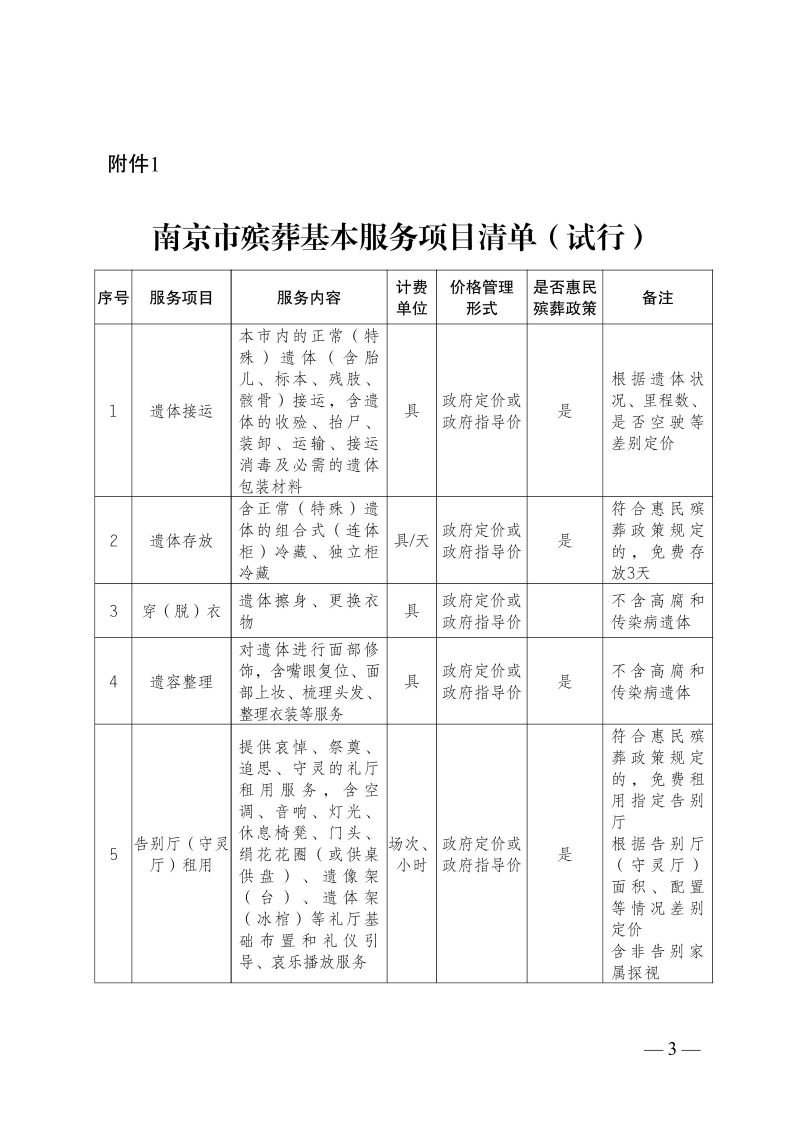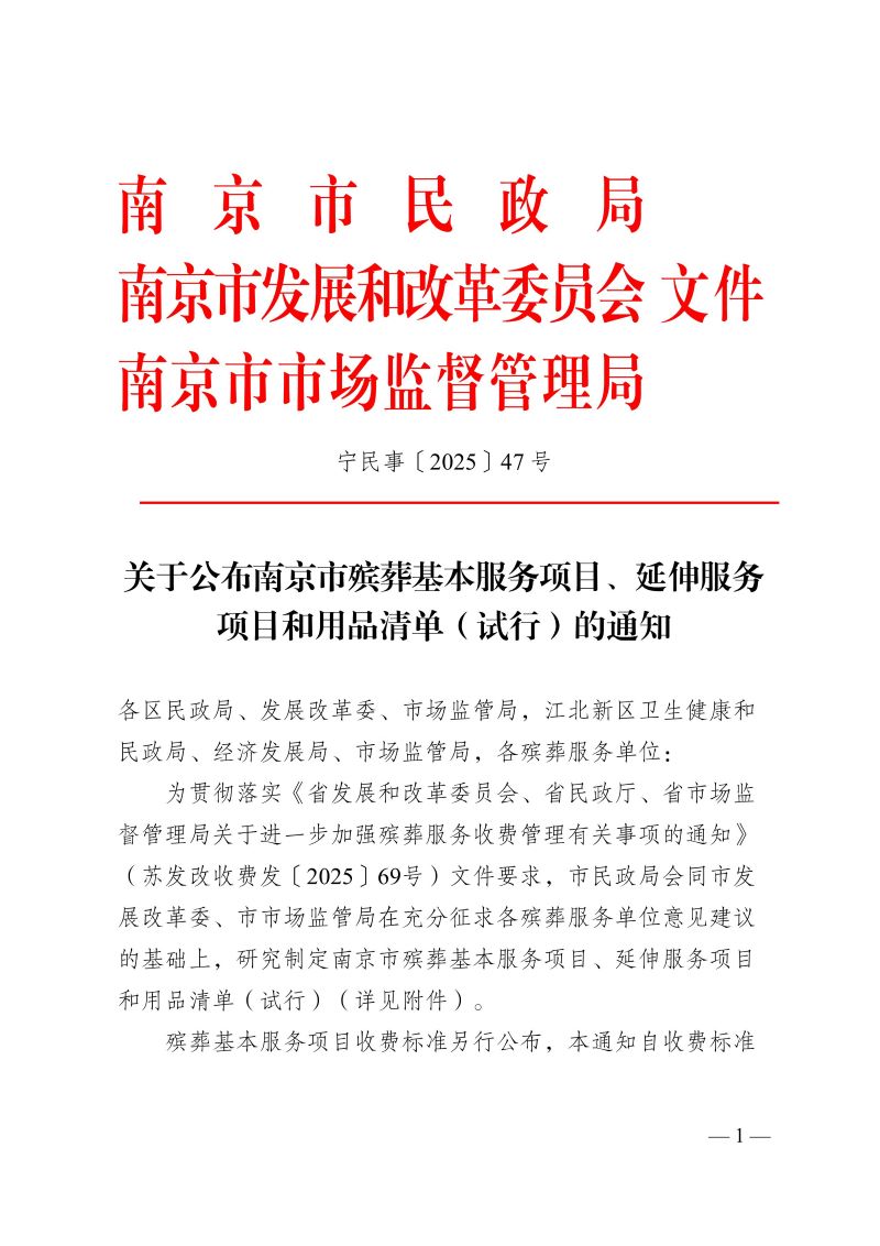 【部门文件】关于公布南京市殡葬基本服务项目延伸服务项目和基本用品清单(试行)的通知