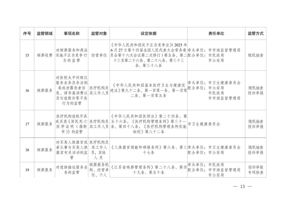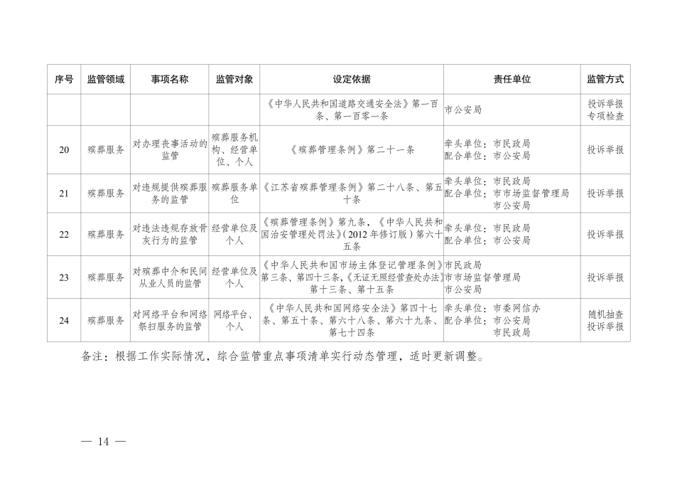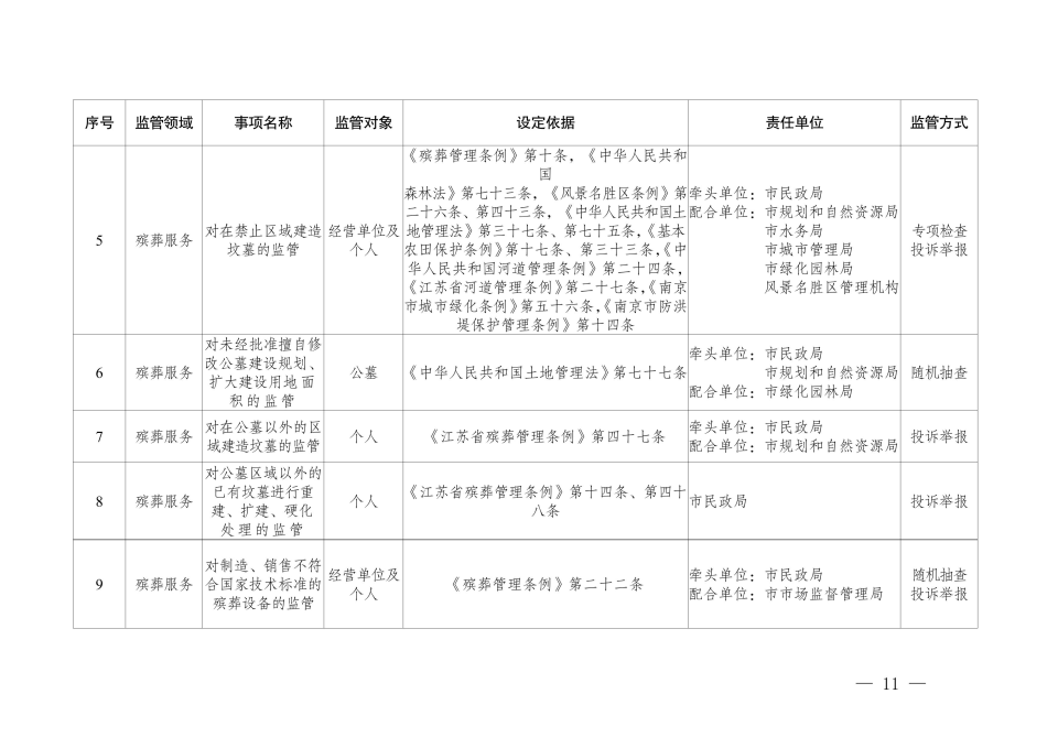 附件:南京市殡葬行业跨部门综合监管重点事项清单